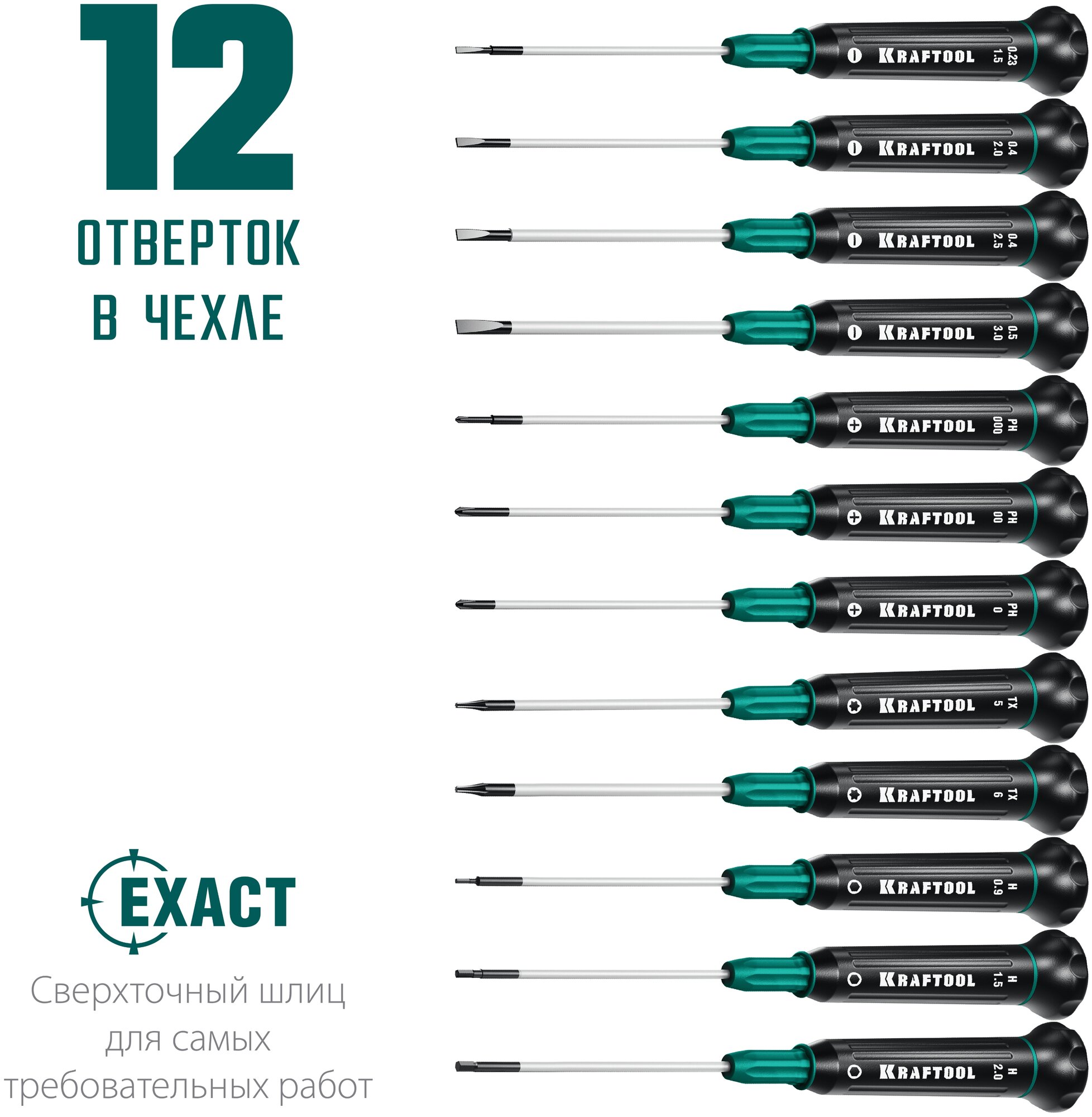 Набор отверток для точных работ KRAFTOOL Precision-12, 12 предм. (арт 25689)