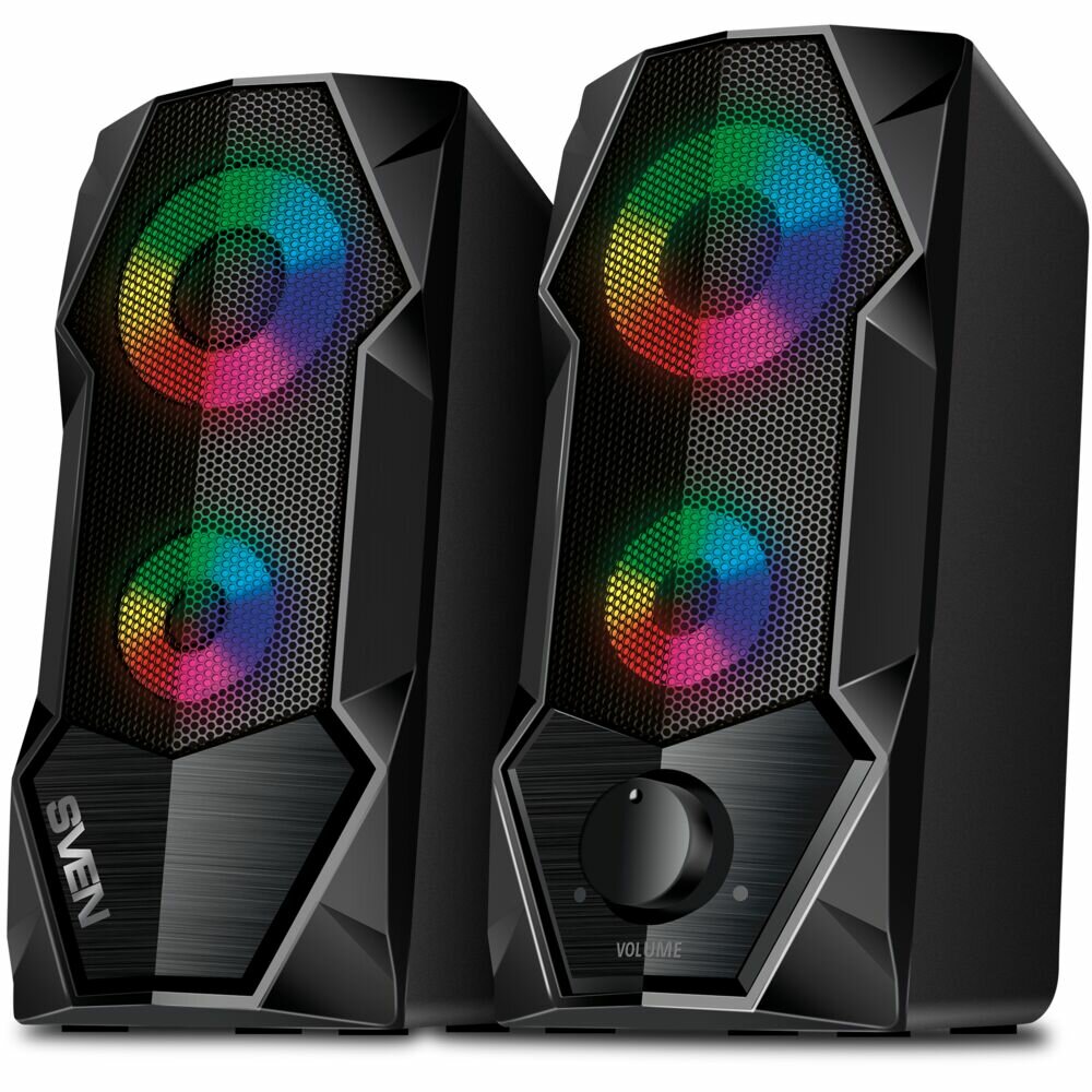 Колонки 2.0 SVEN 410 / 6W / USB-питание / RGB подсветка / Чёрный / корпус - пластик
