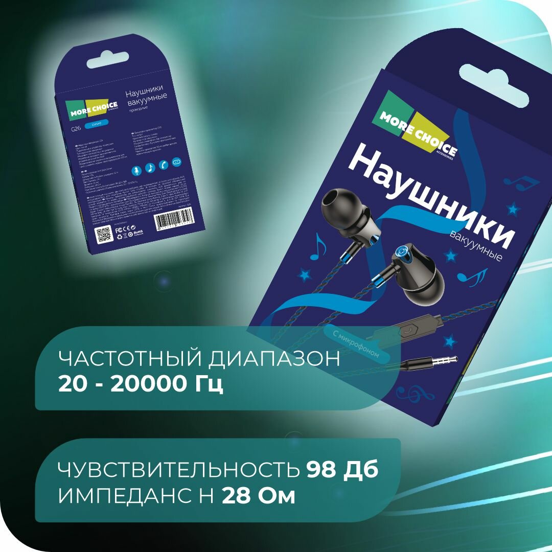 Наушники MORE CHOICE G26 проводные, вакуумные, 1,1м, черный/синий