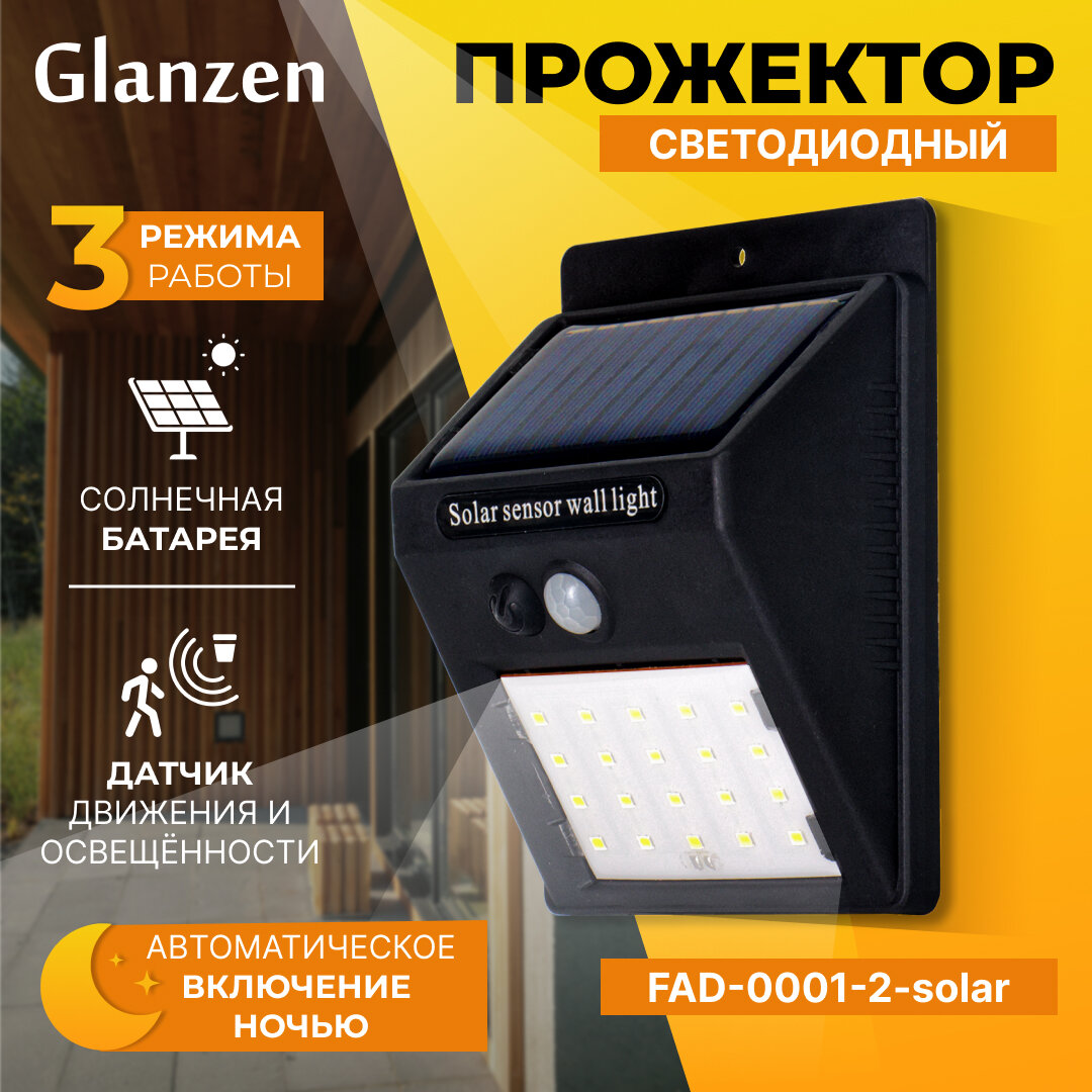 10 цен на GLANZEN Светодиодный прожектор на солнечных батареях c датч. движ. FAD-0001-2-solar КА-00007463