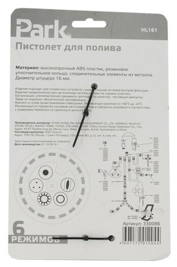 Пистолет для полива PARK 1/2, 6 режимов, эргономичная ручка информация:
