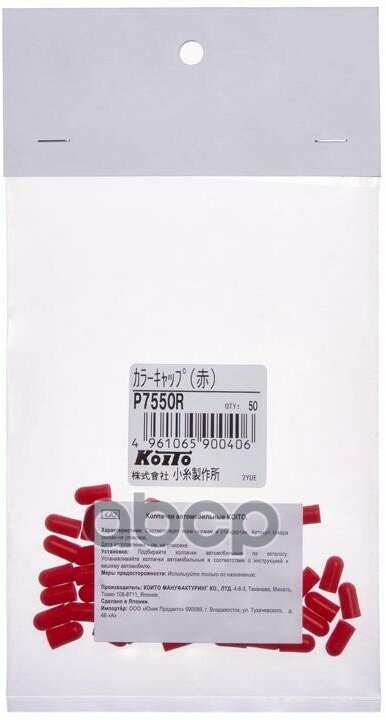 Колпачки Для Ламп T5 Колпачки Цвет. (Красный), Упак. 50 Шт. KOITO арт. P7550R информация: