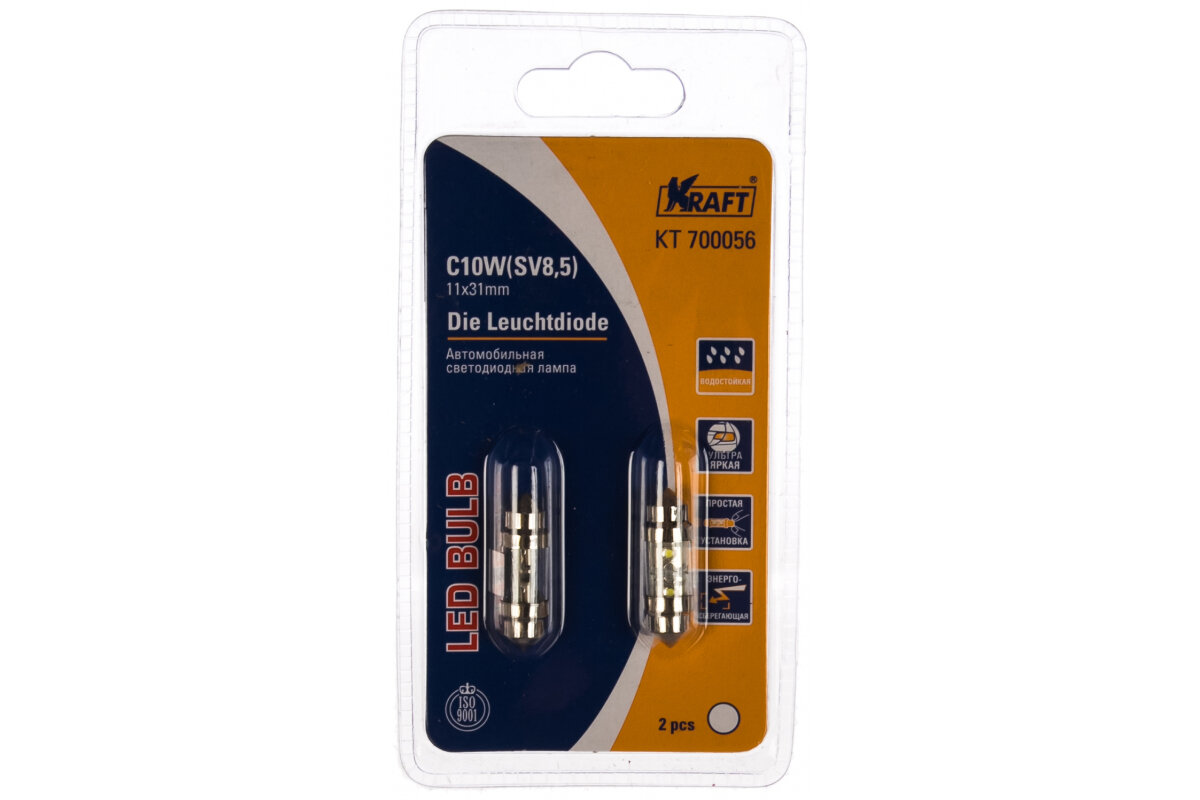 Лампа светодиодная 12V C10W 10W SV8,5-8 KRAFT 2 шт. блистер KT700056 Kraft арт. KT700056