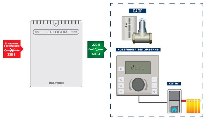 Отзывы на Источник бесперебойного питания для котельной автоматики TEPLOCOM-50+ бастион