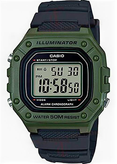 Наручные часы CASIO W-218H-3A, черный, зеленый