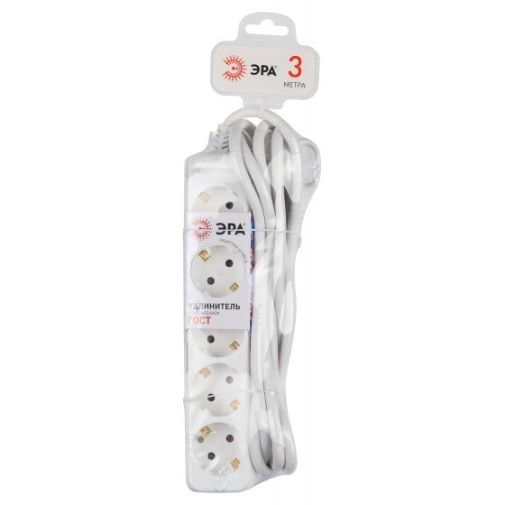 10 цен на Удлинитель электрический U-5e-3m-3x1.5 с заземлением 5 розеток 3м ПВС 3х1.5кв.мм 16А Эра Б0044038