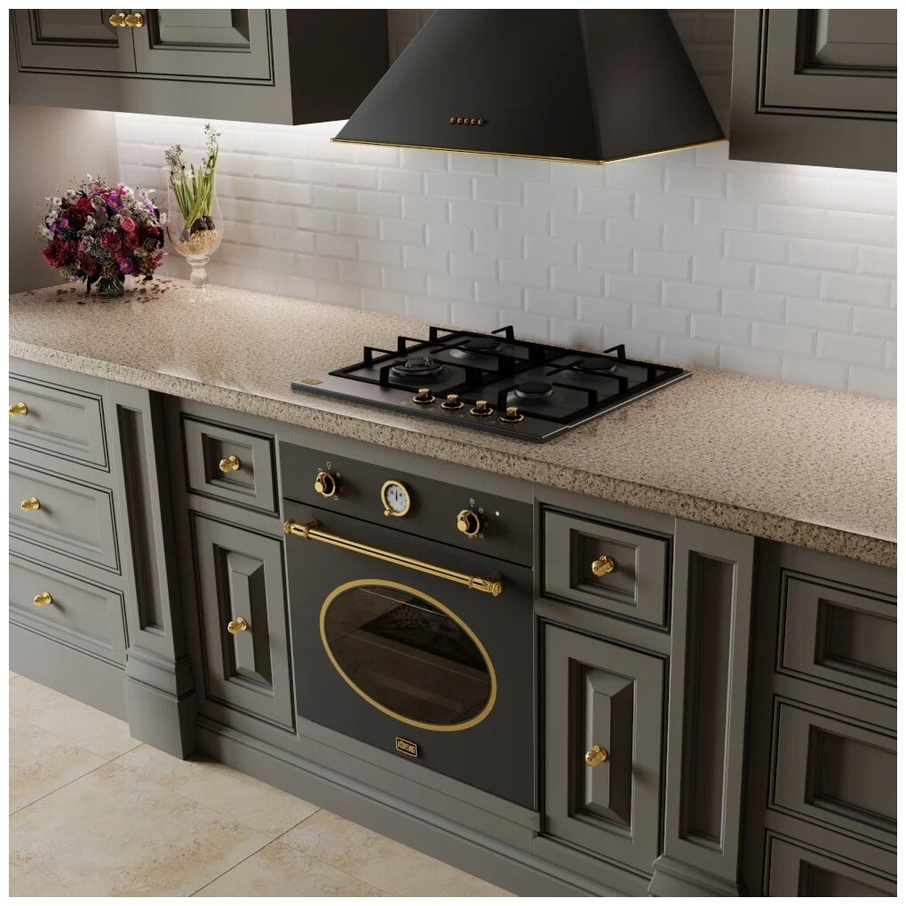 Купольная вытяжка Korting KHC 6648 RGN, цвет корпуса черный, цвет окантовки/панели золото