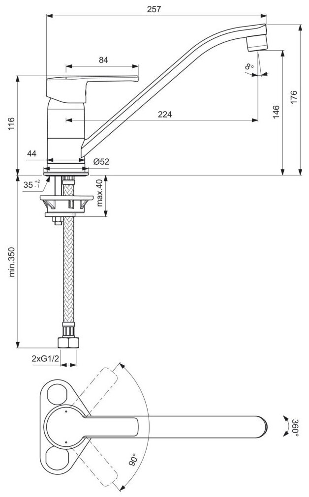 Cмеситель для кухни Uno, литой поворотный излив 224 мм, хром, Vidima BA241AA информация: