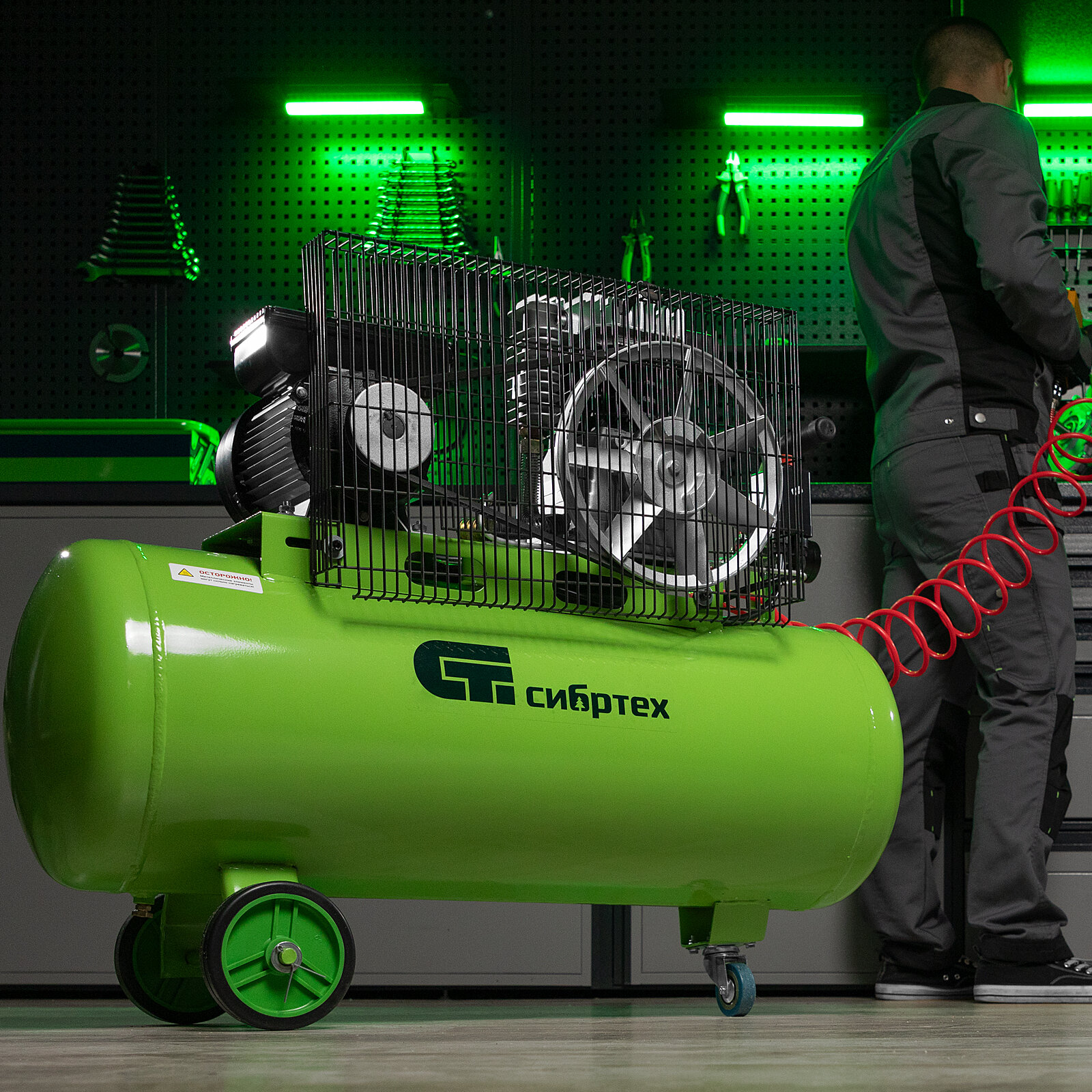 Отзывы на Компрессор воздушный КР-2200/100, 2,2 кВт, 350 л/мин, 100 л, ременной привод, масляный// Сибртех 580 .