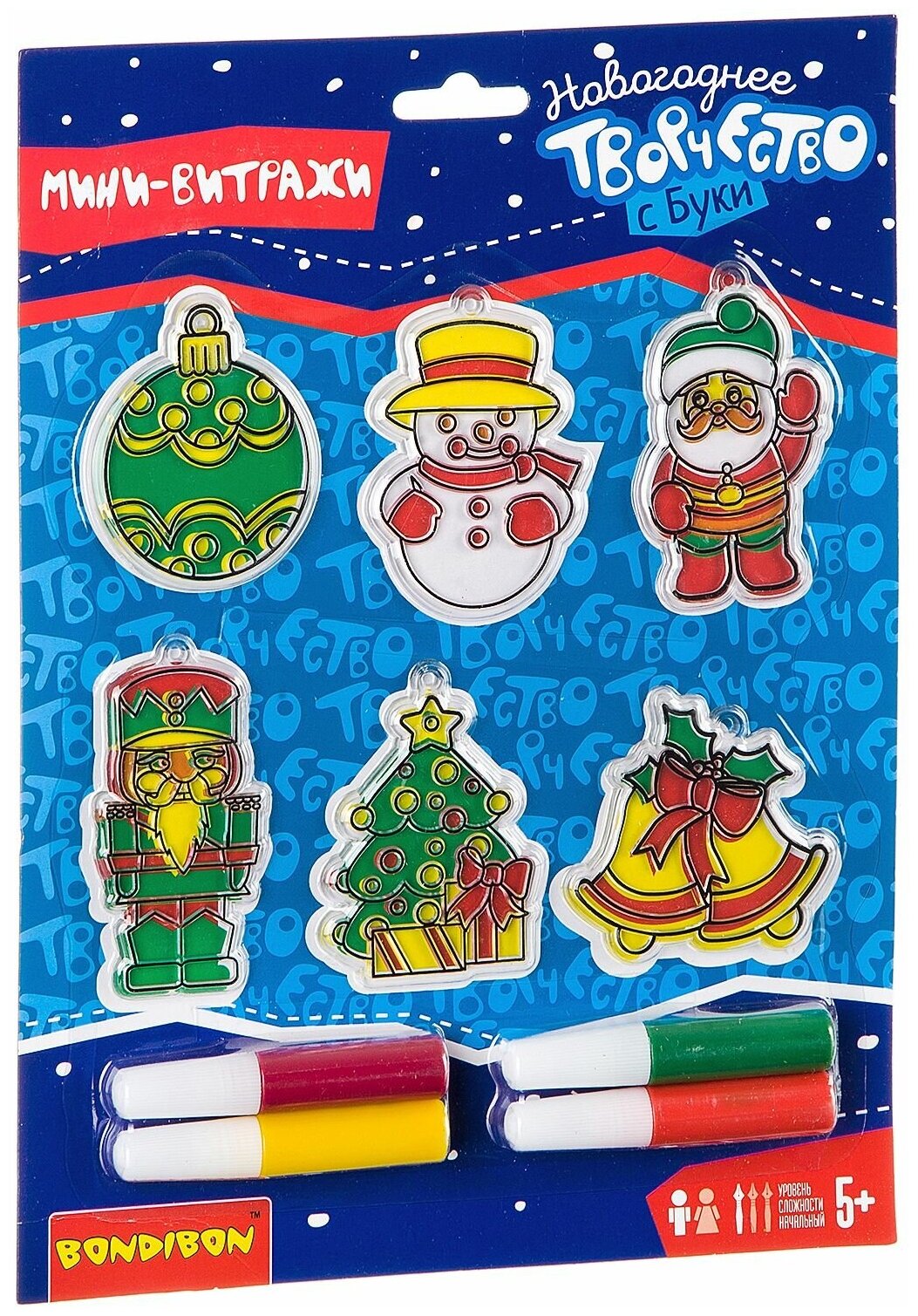 10 цен на Набор для творчества Bondibon "Новогодние украшения. Витраж." для мальчиков, 6шт.в наборе