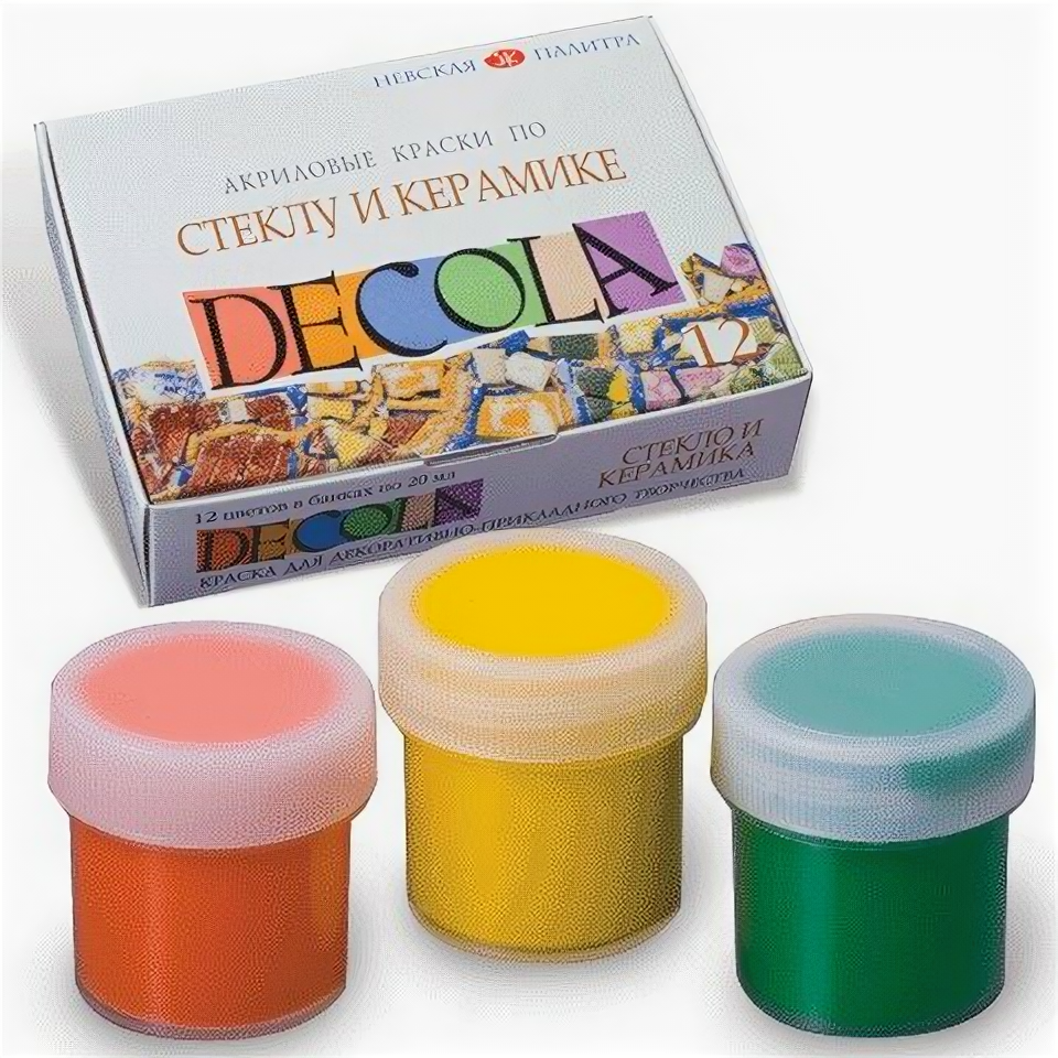 Набор акриловых красок по стеклу и керамике "Decola", 12 цветов, 20 мл, 4041114 невская палитра информация: