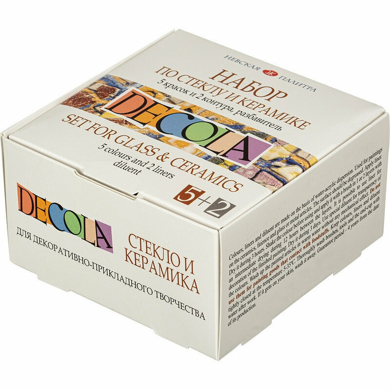 Акриловые краски Decola по стеклу и керамике 5 штук по 20 мл + 2 контура по 18 мл + разбавитель, 934515 информация: