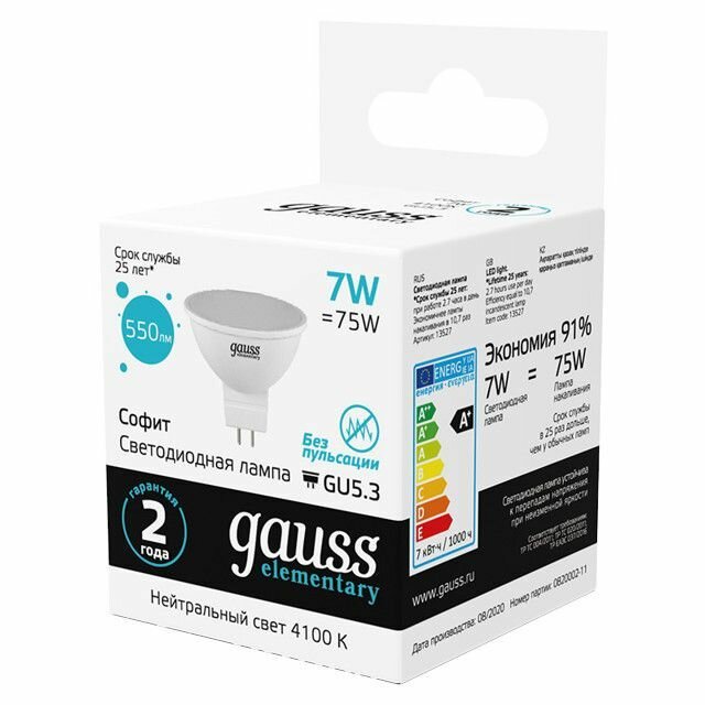 Лампа GAUSS Elementary 7Вт GU5.3 LED 550Лм 4100K спот информация: