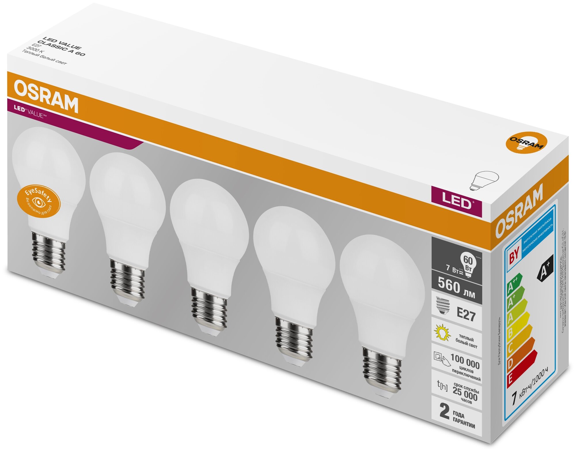 LVCLA60 7SW/830 230V E27 Экопак1X5 RU OSRAM