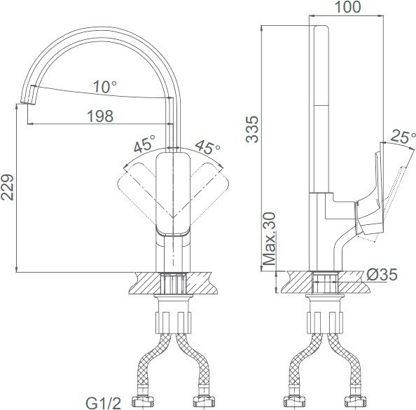 | Комплектация | смеситель - 1 шт., гибкая подводка - 2 шт., крепежная гайка - 1 шт., паспорт изделия - 1 шт., брендовая сумка - 1 шт. |