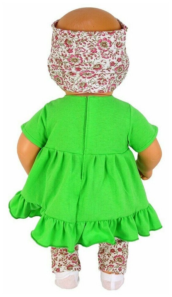 | Комплектация | кукла, платье с оборкой по низу, лосины с тесьмой, повязка на голову с бантиком, трусики, носочки |