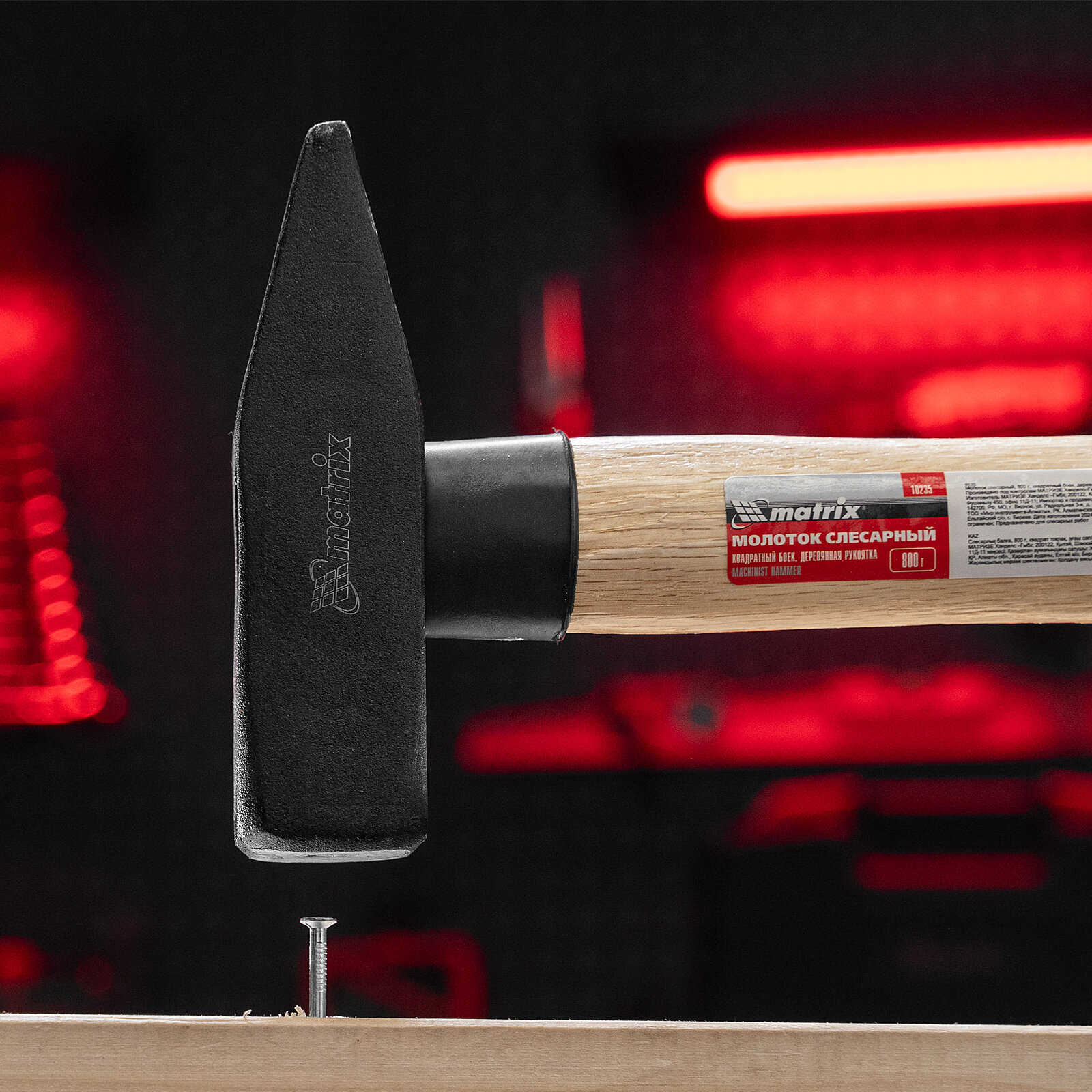 Молоток слесарный, 800 г, квадратный боек, деревянная рукоятка, MATRIX 10235
