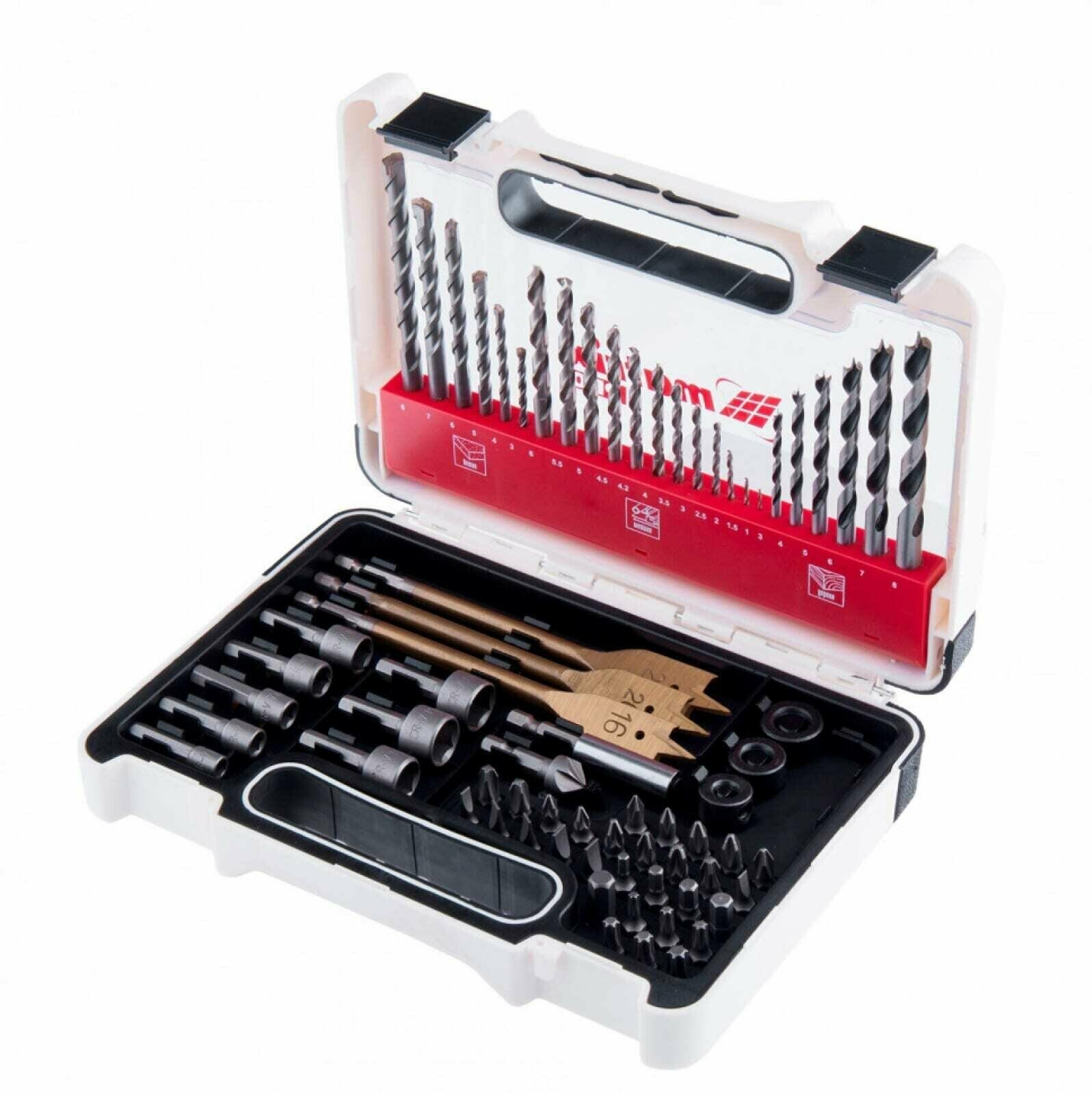 MATRIX Набор сверл комбинированный, сверла по металлу 1-6 мм, бетону 3-8 мм, дереву 3-8 мм, перки, биты 30 шт, адаптер, головки 8 шт, 71 предмет Pro Matrix, ( 725671 )