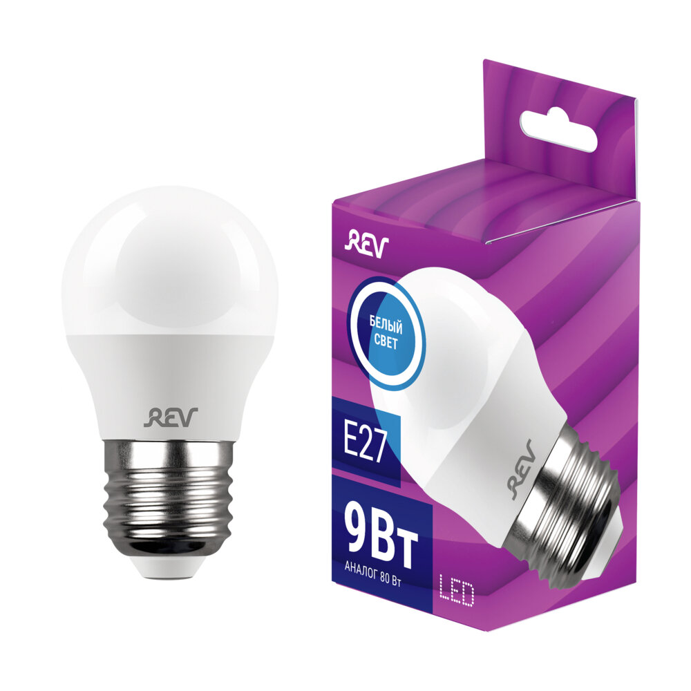 Лампа светодиодная G45 Е27 9W 4000K холодный свет REV 32409 6