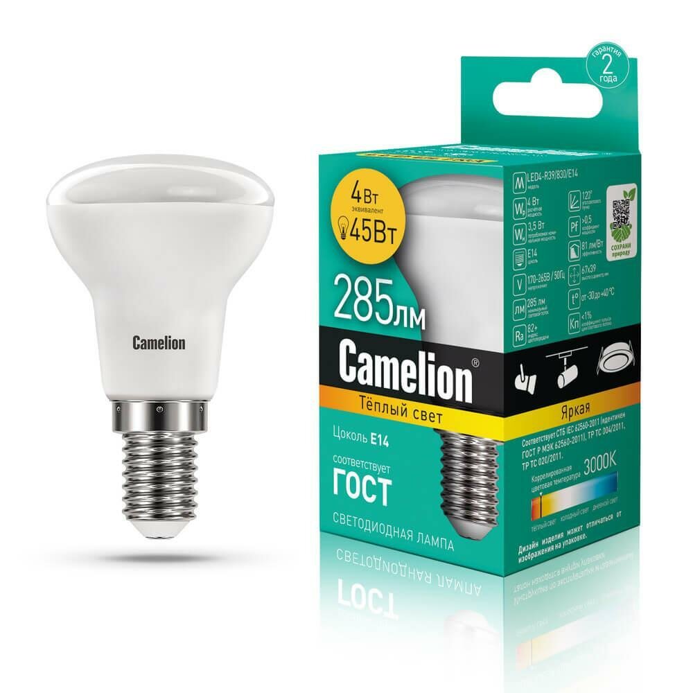 Лампа CAMELION Е14 4Вт 3000K 285Лм 220В LED4-R39/830/E14 13353, светодиодная, теплый белый, рефлекторная