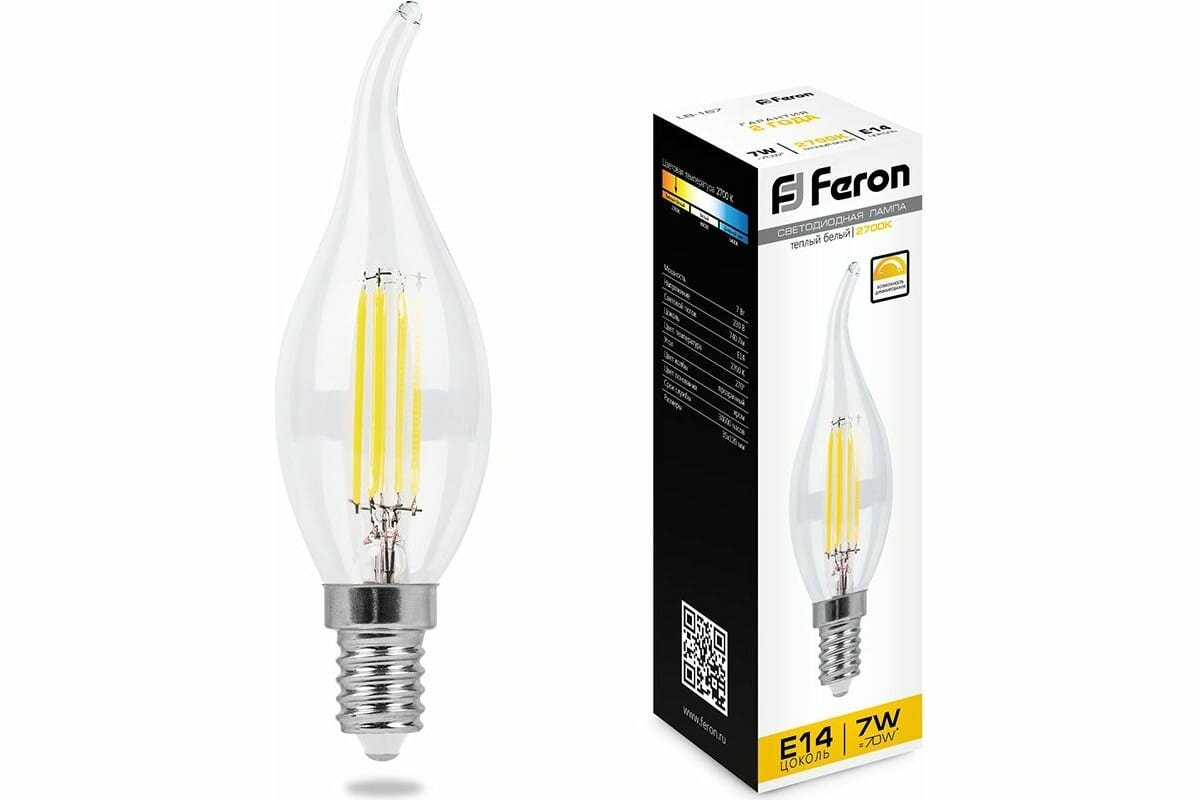 Feron LB-167 Лампа светодиодная филамент, C35T (свеча на ветру) диммируемая, 7W 230V 1 шт. 634 ₽