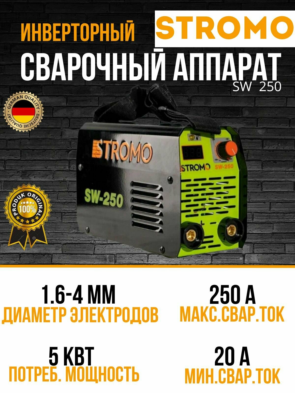 Сварочный аппарат инверторный STROMO SW 250, электрод 1,6-4мм, ММА, 20-250А, 4кВ