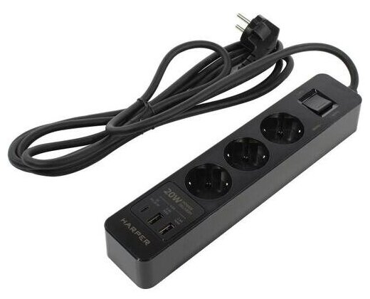 Harper Сетевой фильтр с USB зарядкой UCH-430 Black PD3.0 (3 роз.,3м., 2xUSB+1xType-C портами, 4000W) 5 162 ₽