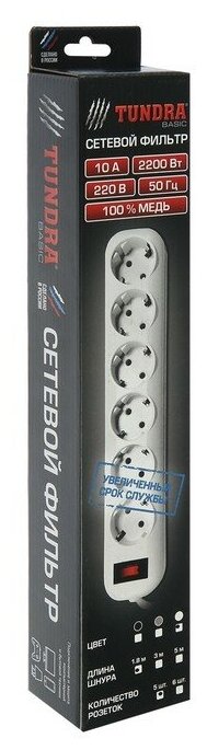 10 цен на Сетевой фильтр 5 гн. 1,8м с выкл. ПВС 3х0,75 белый СОЮЗ
