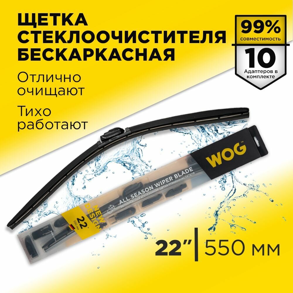 Отзывы на Щетка Стеклоочистителя Всесезонная Бескаркасная, Бесшумная 22’’ С Комплектом Адаптеров (10 Шт.) Wog, 1 Шт WOG арт. WGC1408