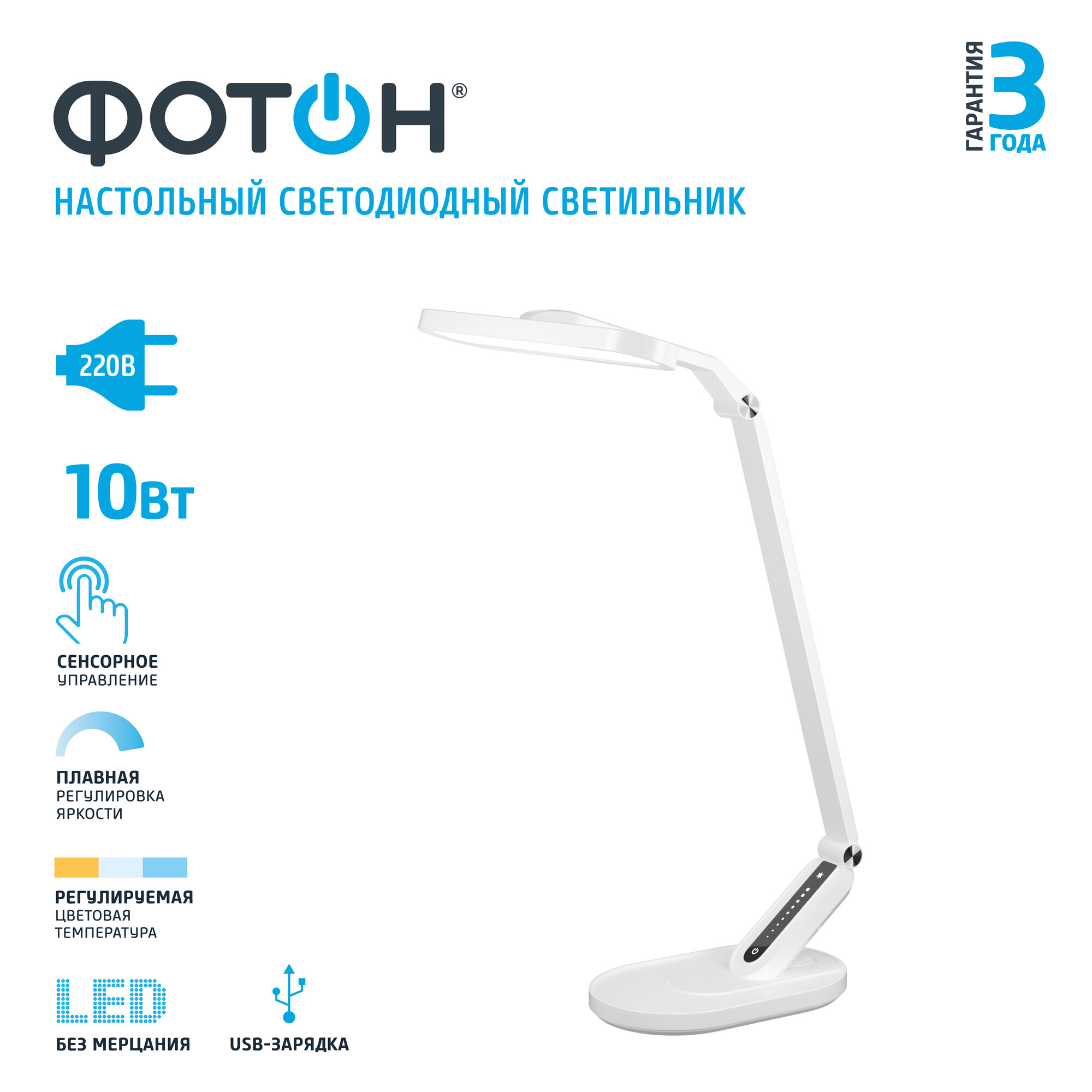 Фотон Настольный светильник светодиодный сетевой TL-10DRU-W 10 Вт белый USB зарядка 24657