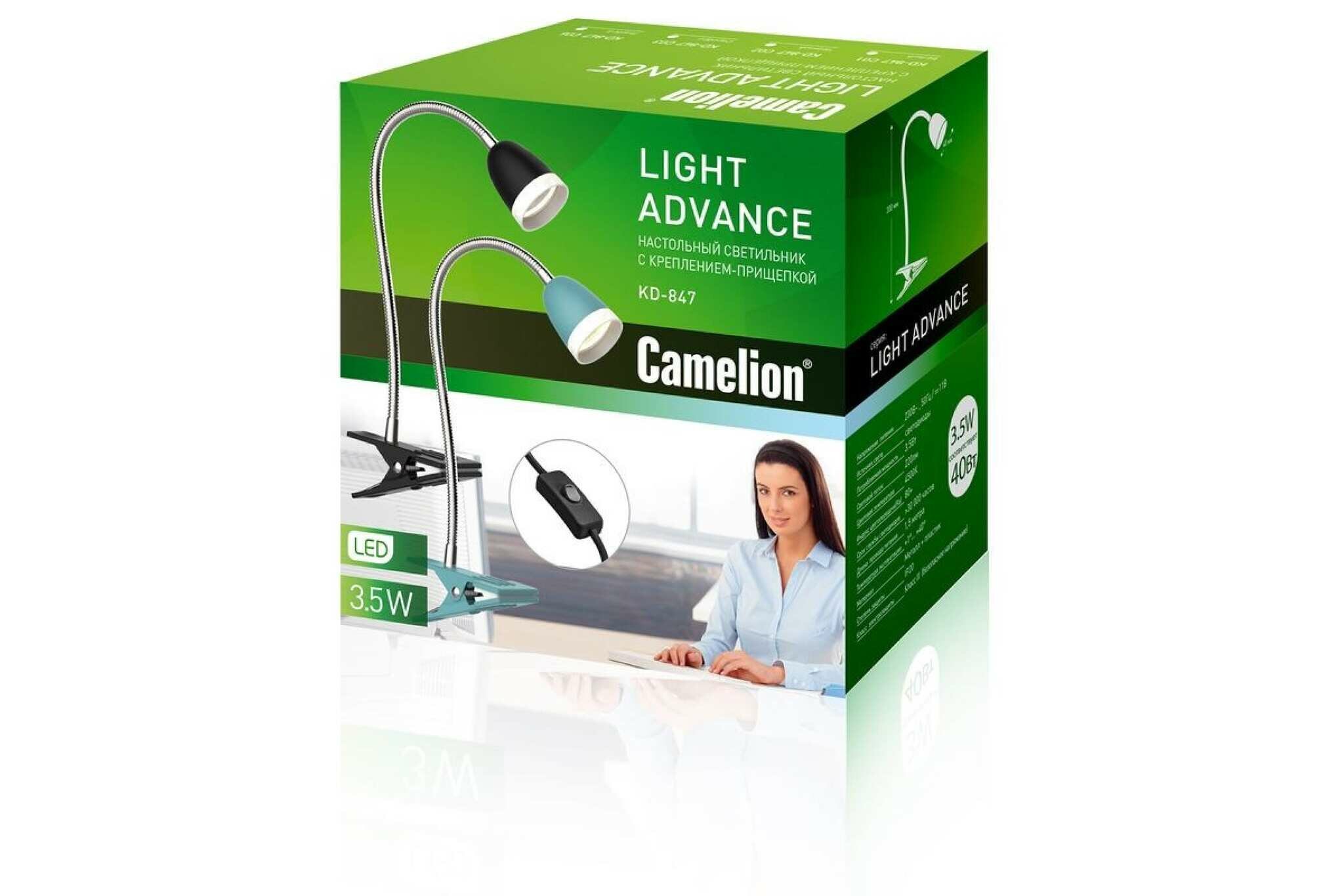 Настольная лампа CAMELION Светильник настольный KD-847 C02 черный LED, на прищепке, 3.5 Вт