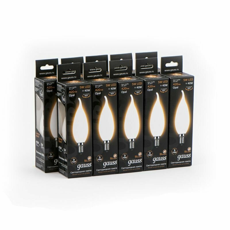 (10 шт)Лампа Gauss Filament Свеча на ветру 5W 420lm 2700К Е14 milky LED 2 576 ₽