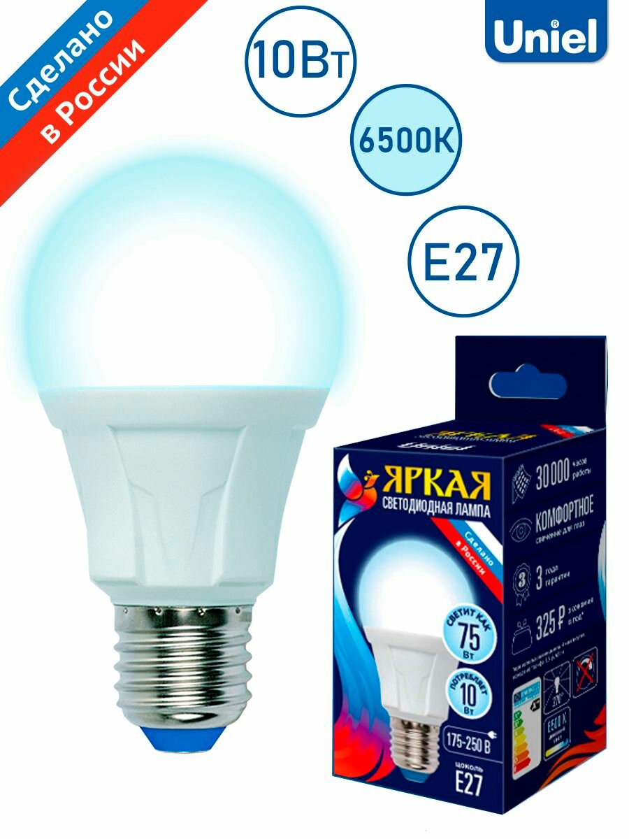 10 цен на Лампа светодиодная Uniel E27 10W 6500K матовая LED-A60 10W/DW/E27/FR PLP01WH UL-00002004