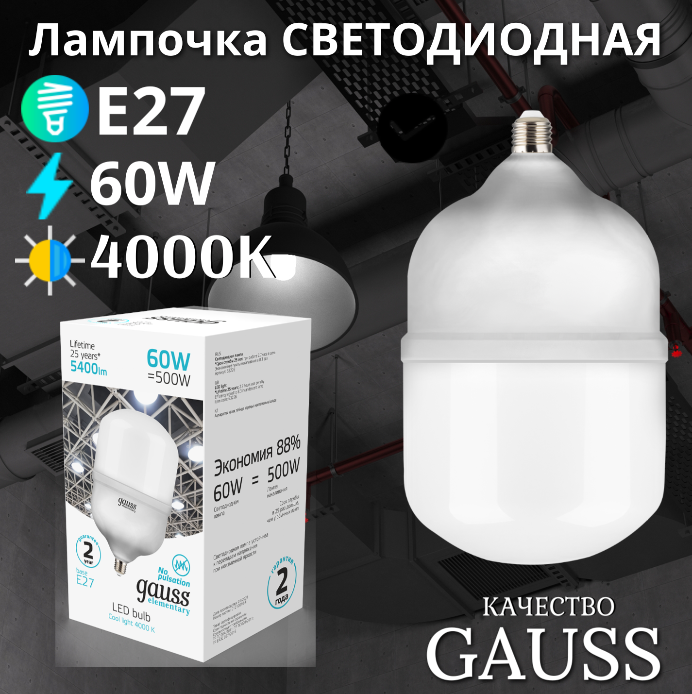 Отзывы на Лампа светодиодная Gauss E27 4000К 60 Вт 5400 Лм 180-240 В цилиндр T160 матовая
