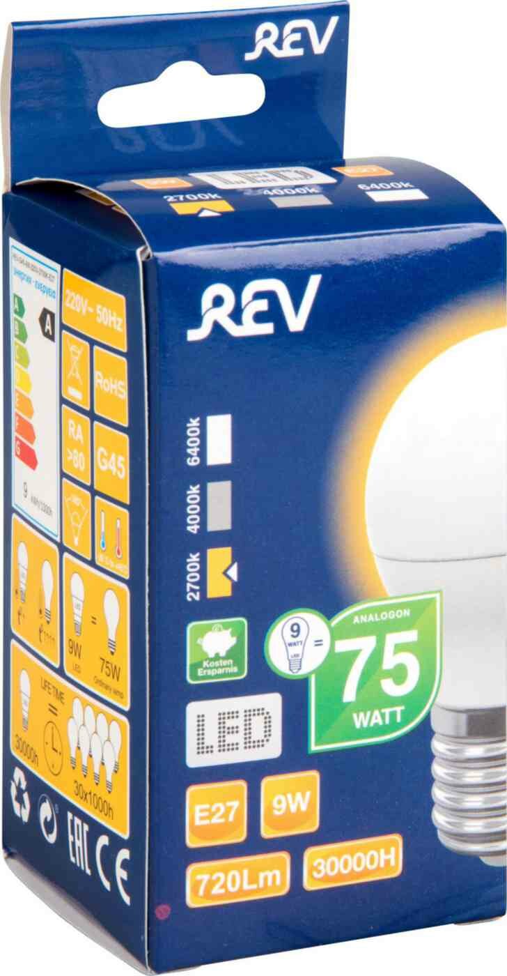 Лампочка REV 32408 9 G45 9 Вт, Е27, белый