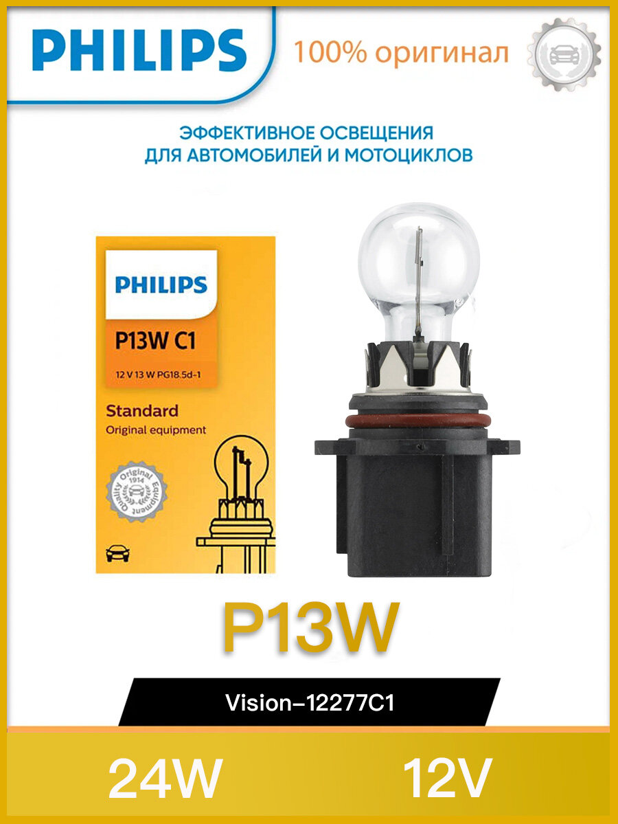 Лампа автомобильная галогенная Philips 12277C1 P13W 12V 13W PG18.5d-1 1 шт. информация: