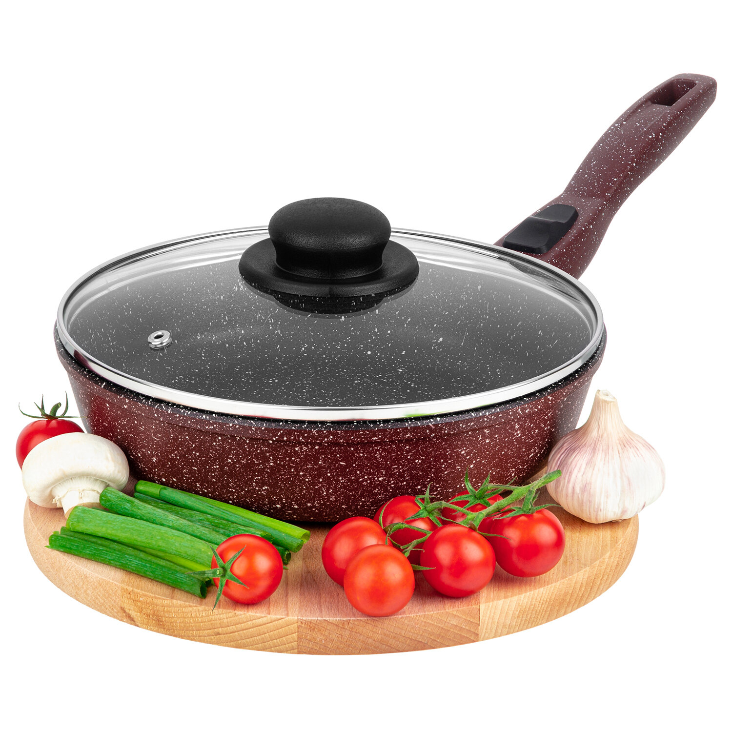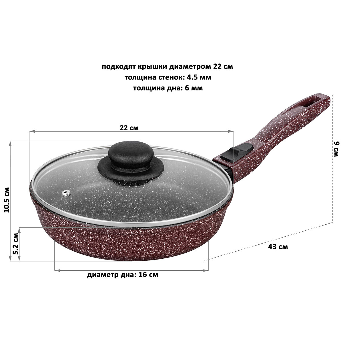 Сковорода глубокая Elan Gallery Гармония вкуса "Рубиновый дуэт" с крышкой, со съёмной ручкой, 22 см информация: