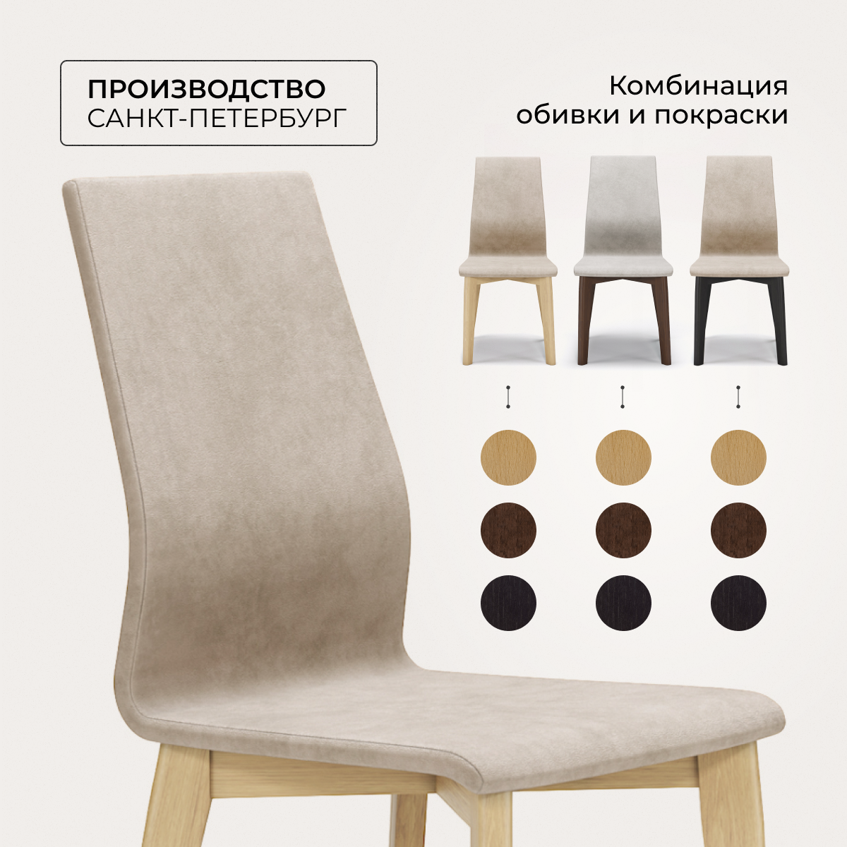 Стулья для кухни ANNI HAUS A-vito, сет 2 шт, массив бука, велюр, цвет: натуральный/hummus