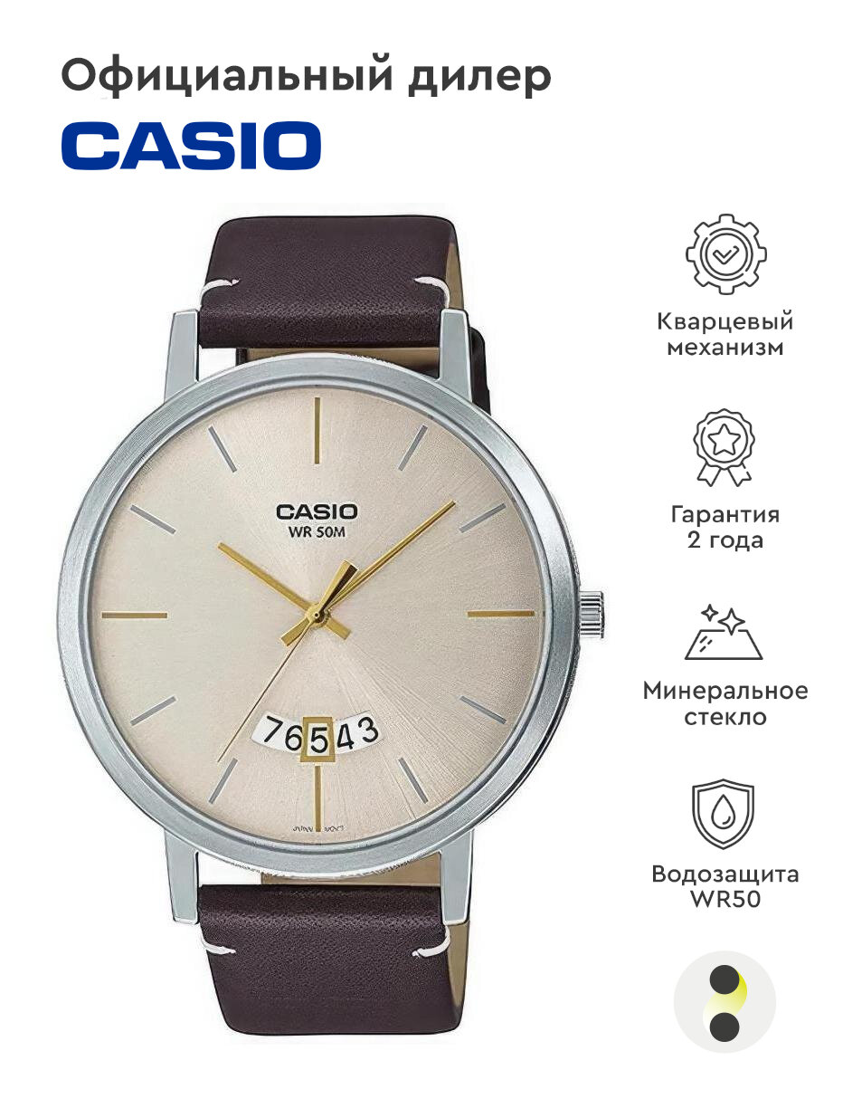 MTP-B100L-2E Casio наручные часы кварцевые WR50 (5 атм) мужские хром, коричневый отображение числа минеральное стекло