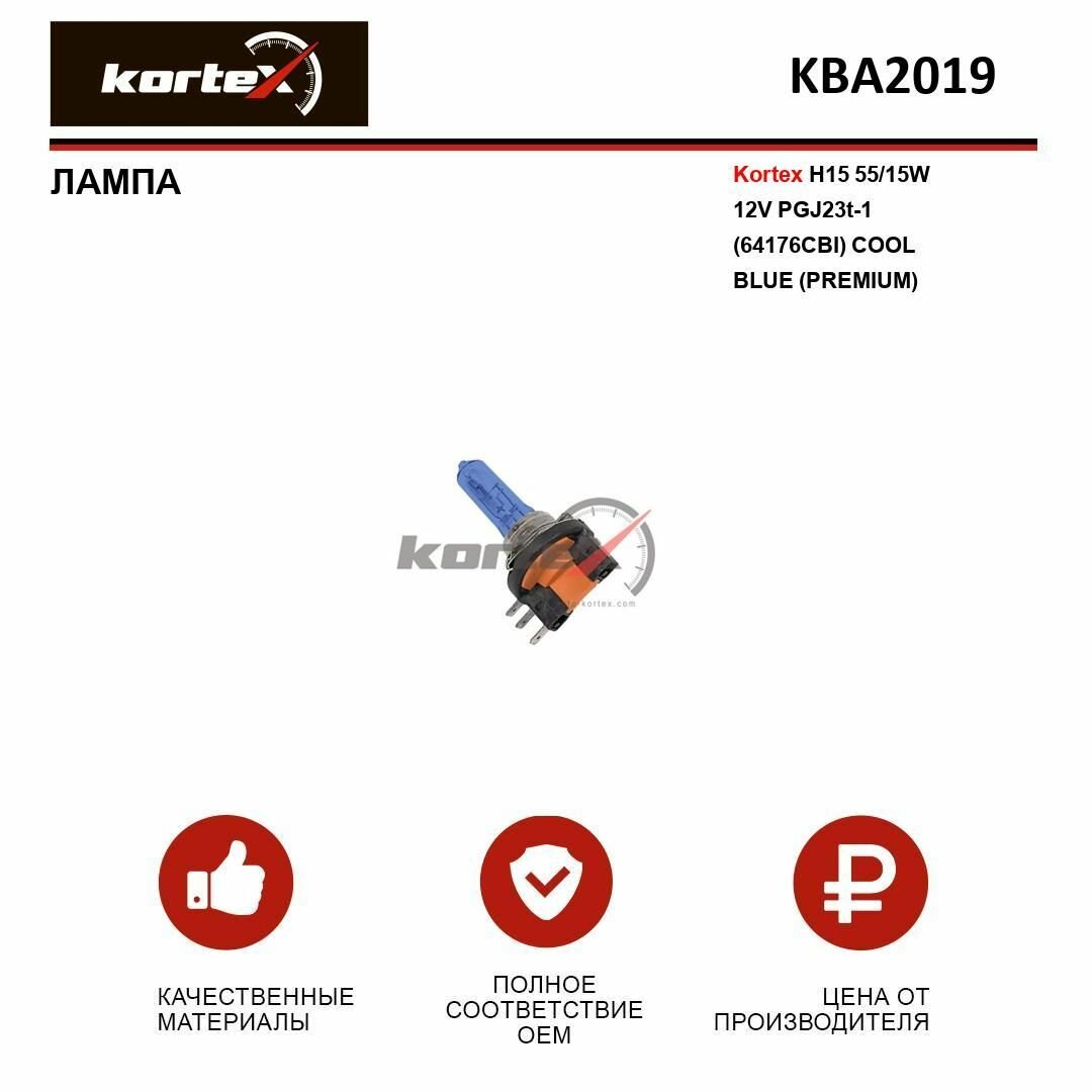 Лампа Галогеновая Головного Света H15 55/15W 12V Pgj23t-1 (64176Cbi) Cool Blue (Premium) Kba2 KORTEX арт. KBA2019