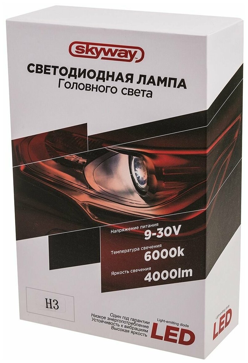 SKYWAY S08701002 Лампа светодиодная H3 26 Вт 12-24 В 4000lm 6000K головного света радиатор + вентилятор 2 шт. Skyway