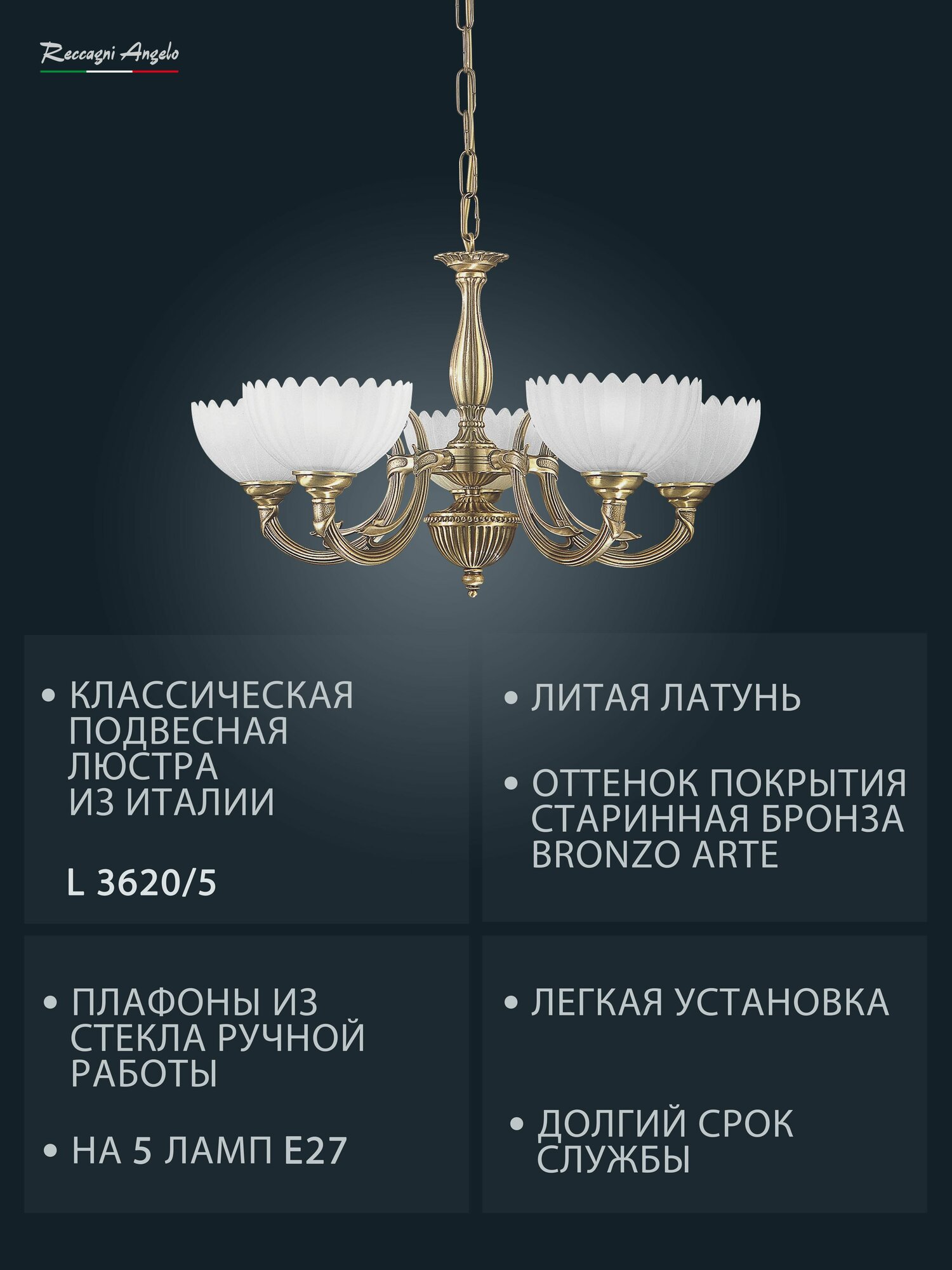 L 3620/5 Люстра подвесная Reccagni Angelo, 5 плафонов, бронза 51 901 ₽