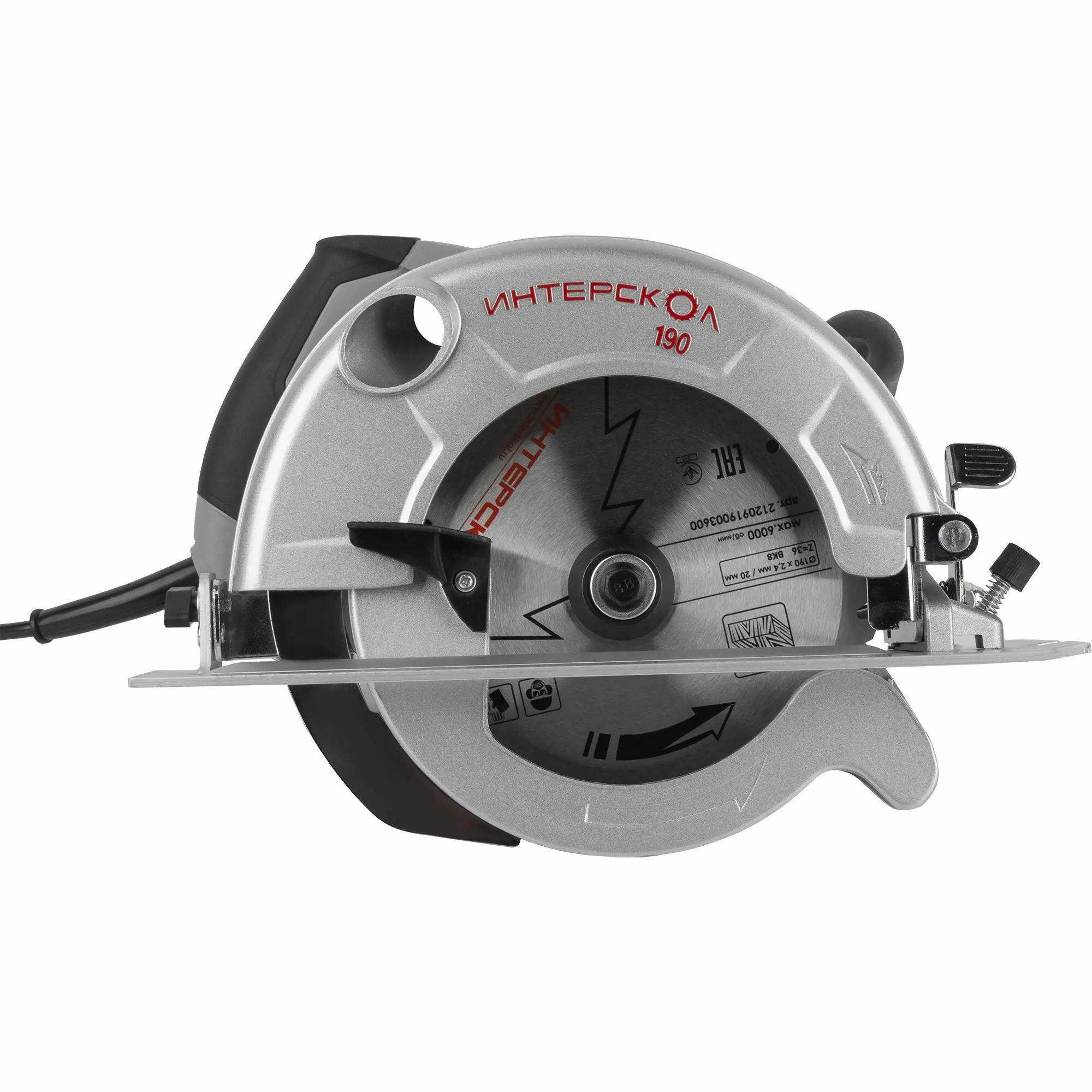 Пила дисковая циркулярная сетевая ИНТЕРСКОЛ ДП-190/1600 (1600Вт, диск 190*20мм, 6000об/мин, сетевой кабель 4 метра, вес: 4,7кг) 552.2.1.70