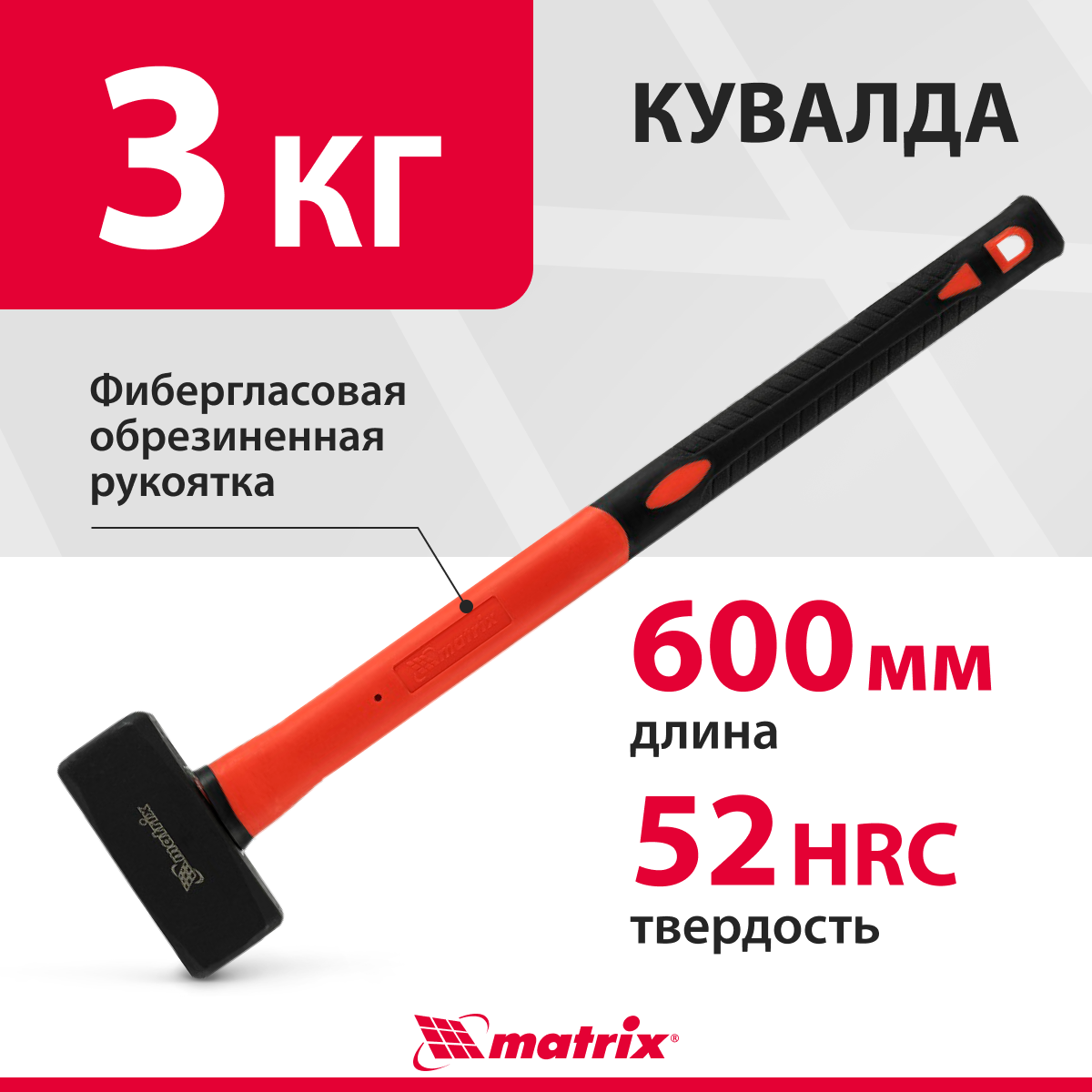 Кувалда 3 кг, фибергласовая обрезиненная рукоятка 600 мм Matrix 10975 информация: