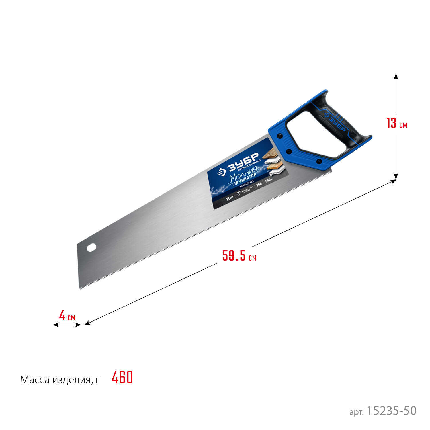 Ножовка по дереву ЗУБР пила молния-ламинатор 500 мм 11TPI 3D зуб информация: