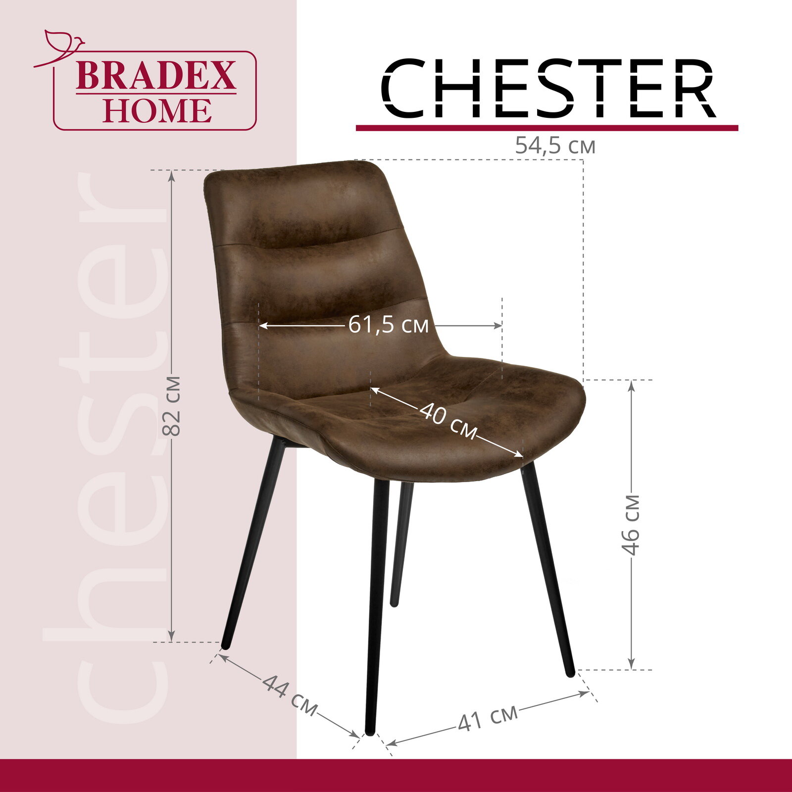 Стул Bradex Chester искусственная замша, коричневый (RF 0402) информация: