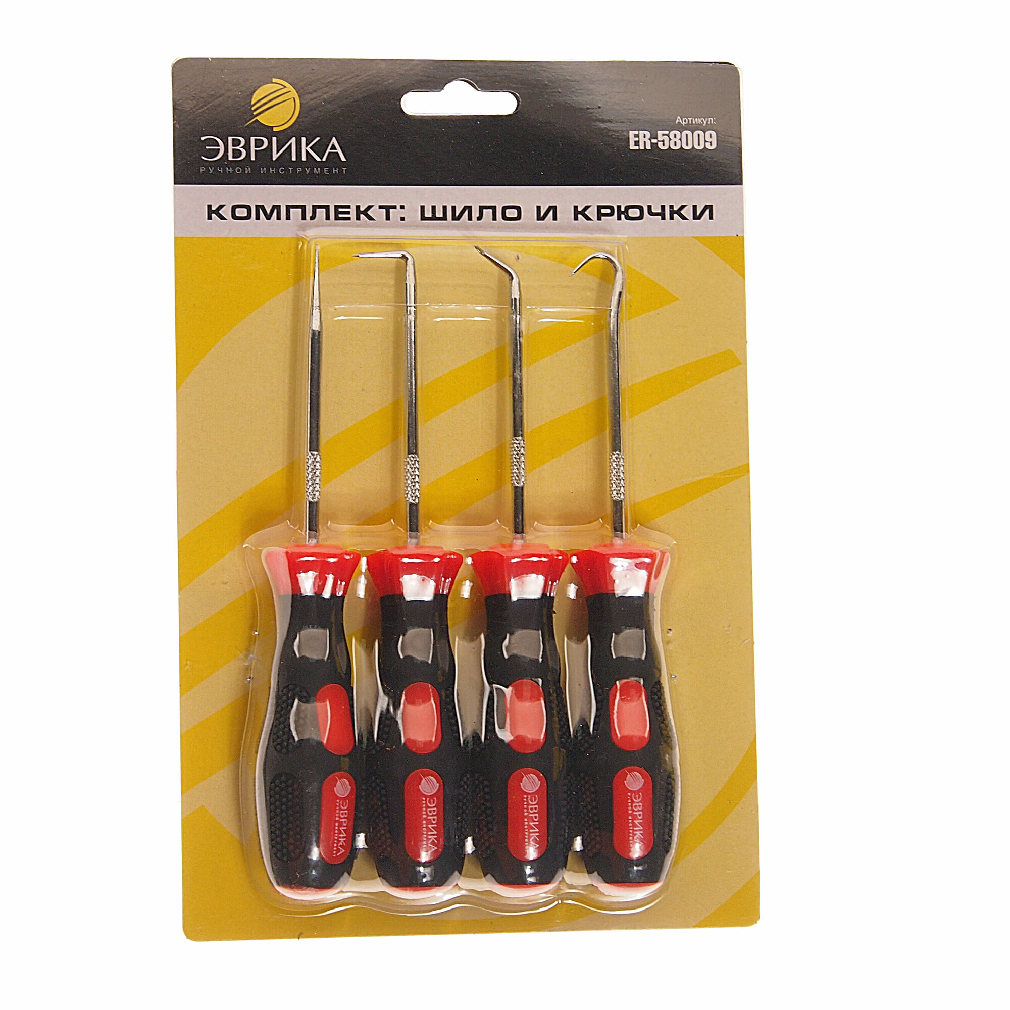 Набор инструментов 4 предмета шило, крючки (изогнутые 45°, 90°), эврика ER58009 (1 шт.) информация: