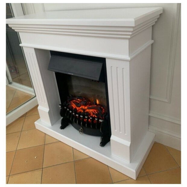 Электрокамин RealFlame Dominica Corner WT МДФ с очагом Majestic, звук потрескивания дров, обогрев, имитация пламени