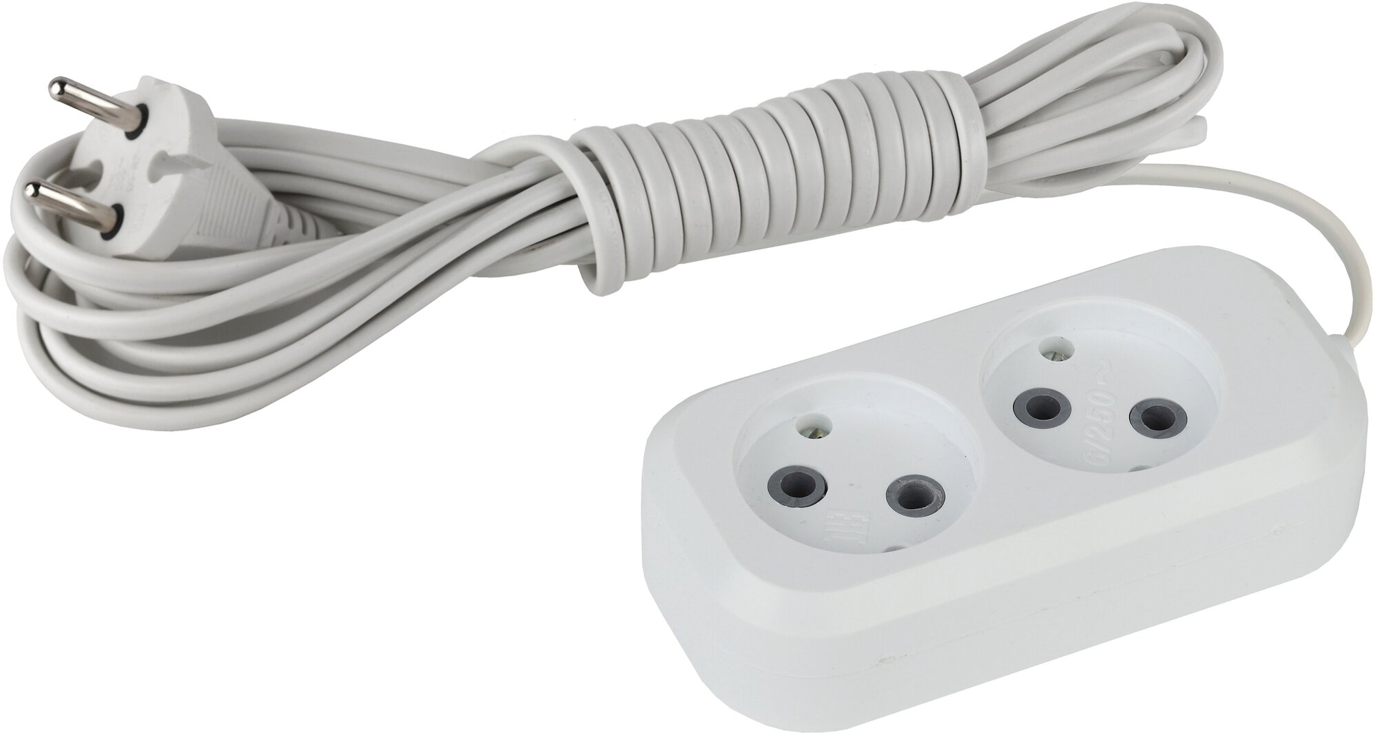 Удлинитель 2гн без З/К 3м белый 6А ШВВП 2х0,75 UX-2-3m ЭРА