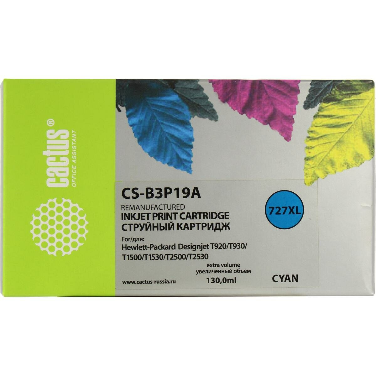 Cactus B3p19a Картридж 727 для HP DJ T920/t1500/t2530, голубой (130мл) . информация: